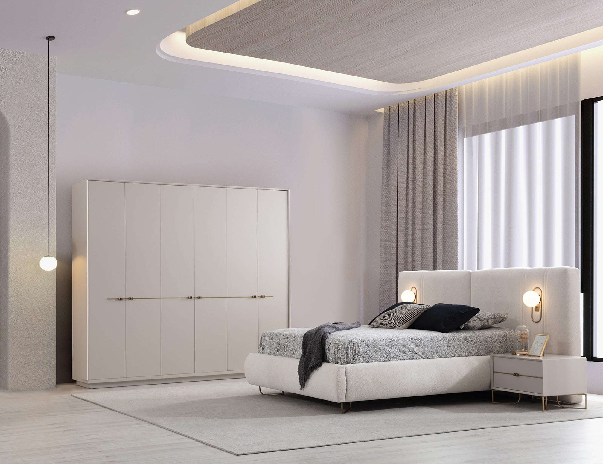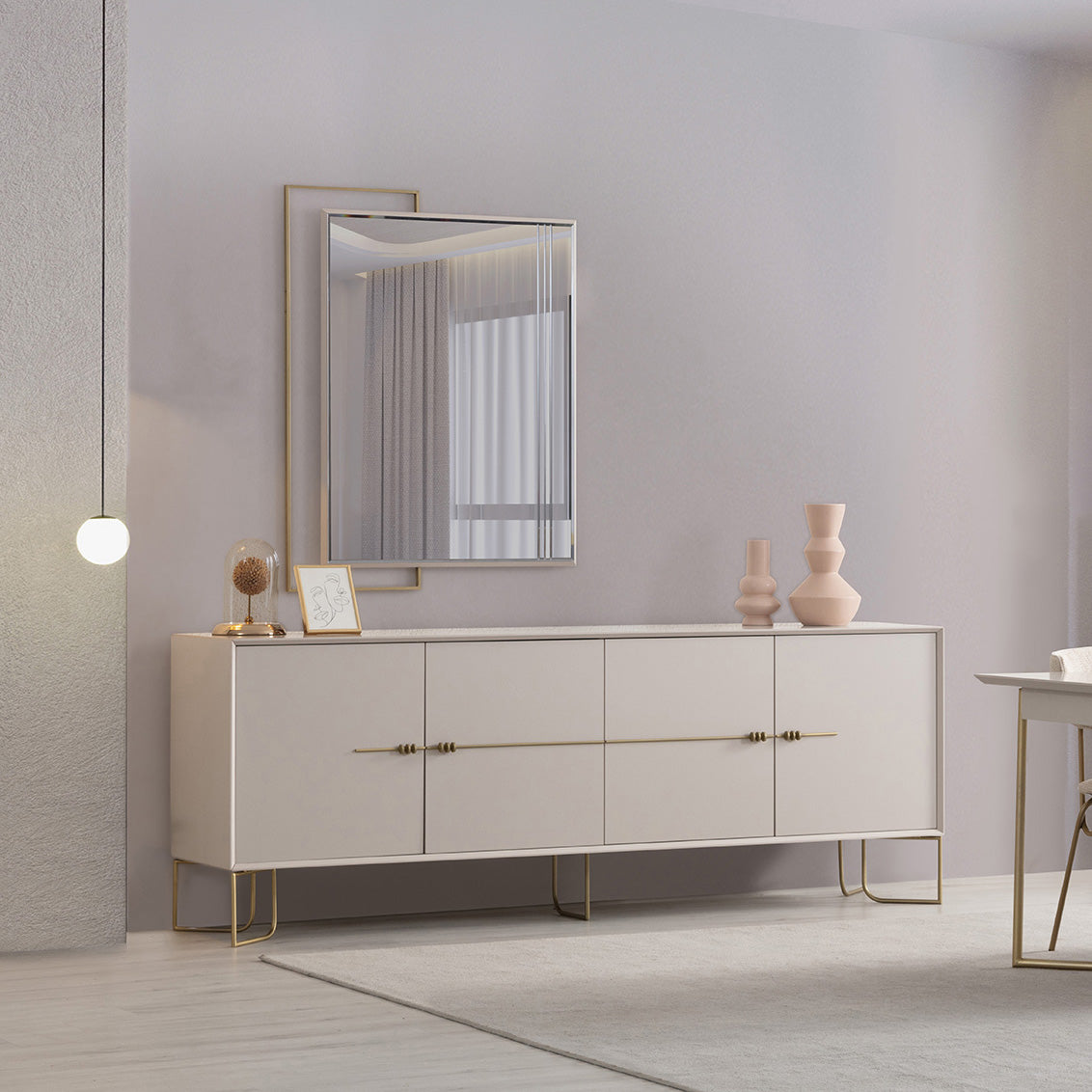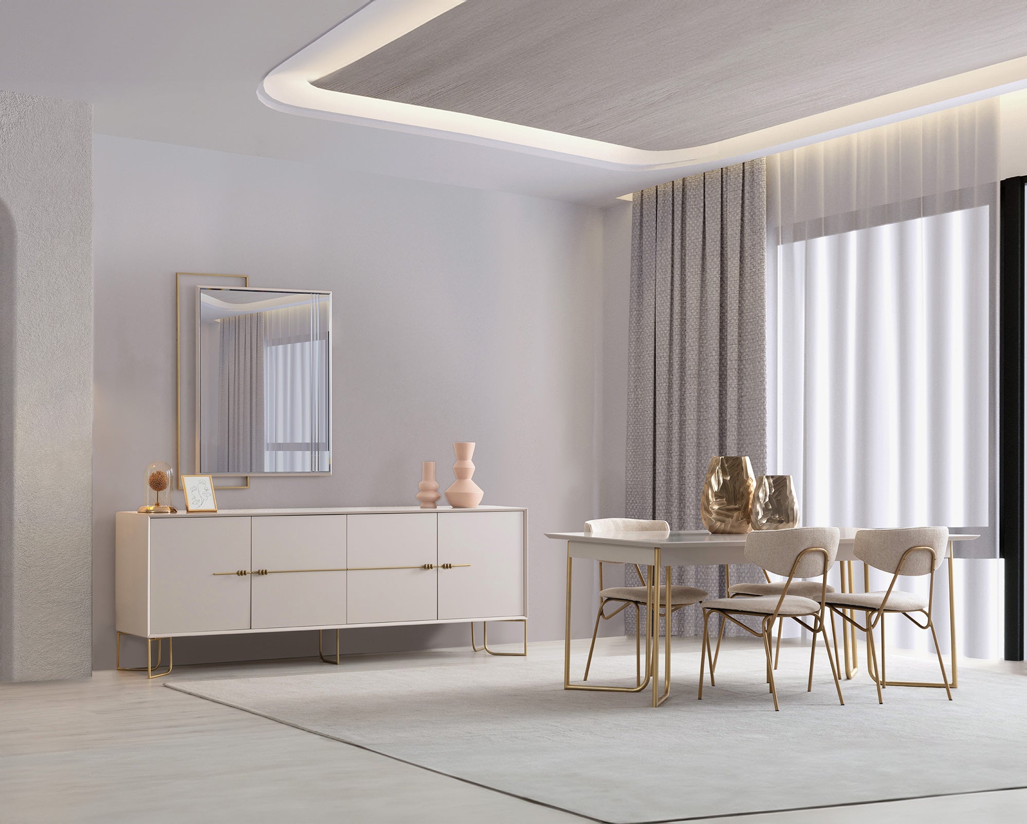 Gold details are one of Estela's standout elements. While thin golden cheetahs flow from the middle of the wardrobe, the gold metal legs of the products emphasize elegance. Gold metal legs support the elegance of the products in the collection.