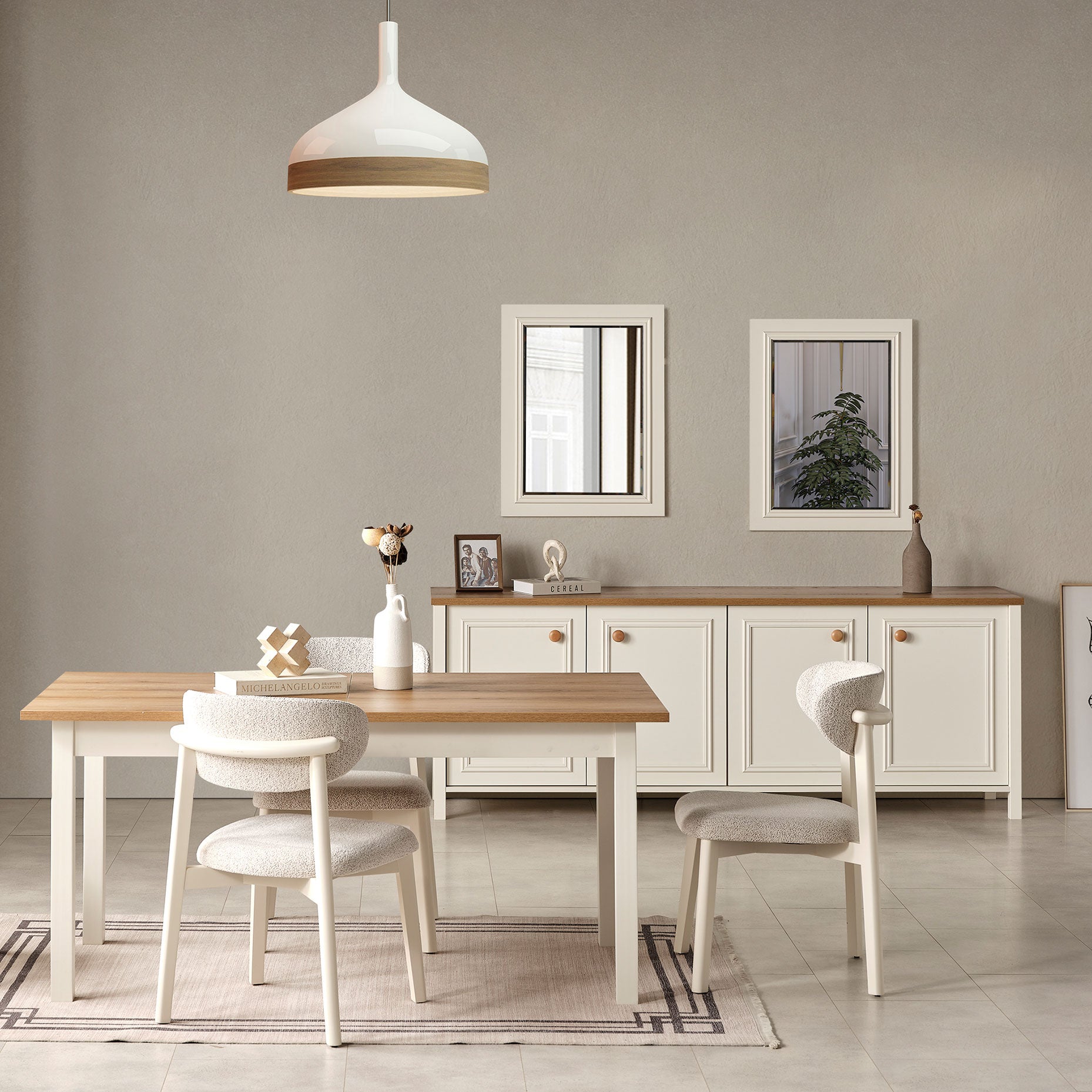 Katre tells a story that begins with white textures and continues with warm wooden details. This collection combines elegance and comfort for those who embrace a modern lifestyle. By blending the warmth of wood with the sophistication of white, the Katre Collection introduces a touch of nature to your home. Our collection features a headboard layered on top of each other, thick wooden legs, and refined details, making it truly stand out.